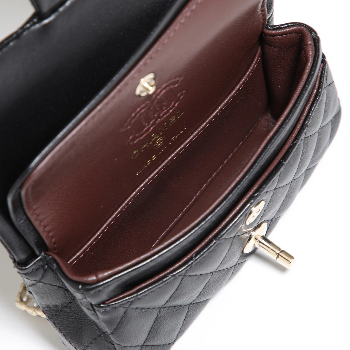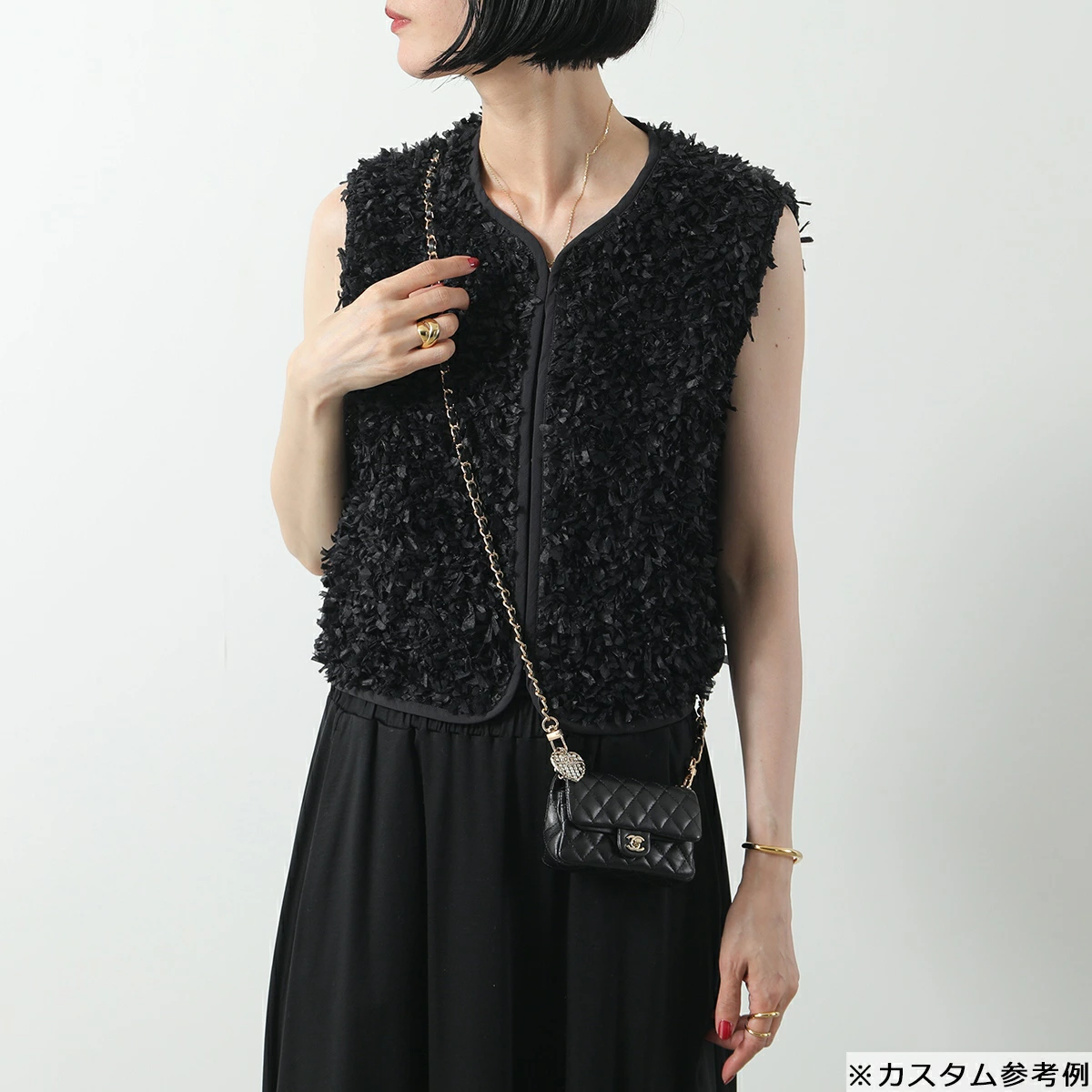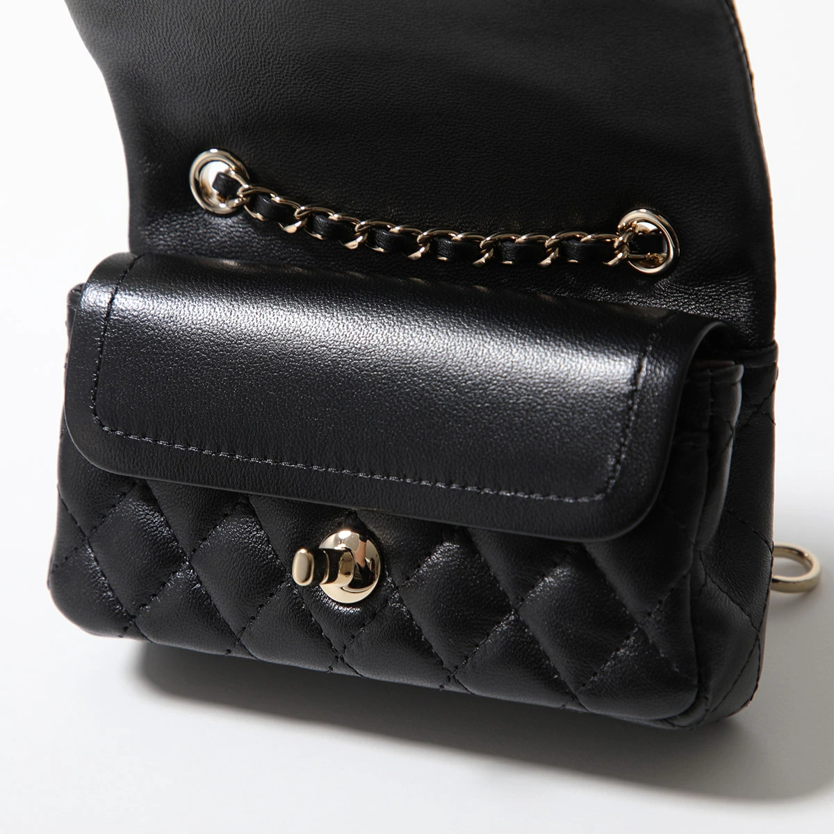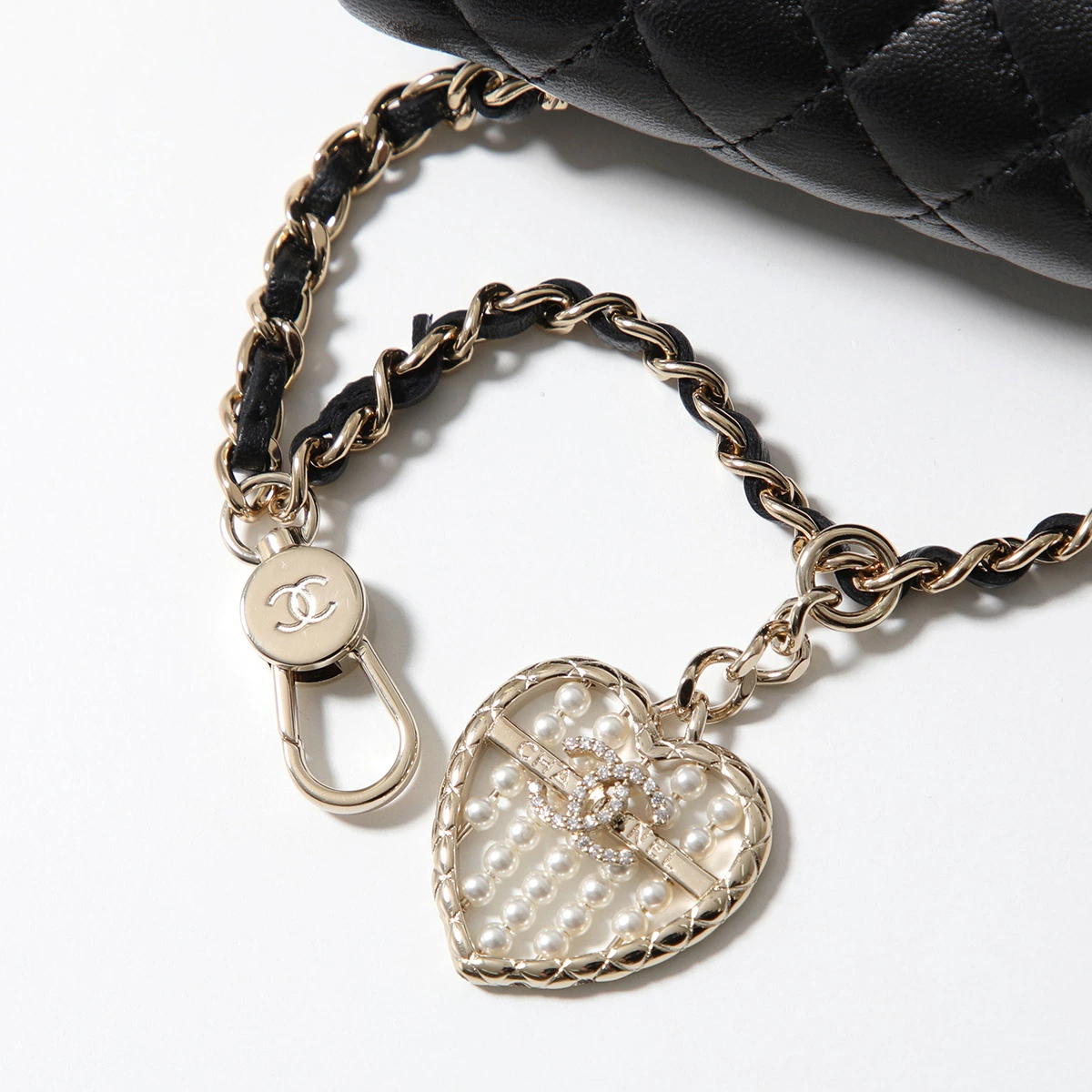 | 商品説明 | ・フック付きチェーンウォレットミニバッグ ・マトラッセキルティングステッチラムスキンレザー ・ココマークロゴメタル ・ツイストロック式フラップ開閉 ・内側はスナップボタン付きフラップ開閉のメインコパーメント×1、カードポケット×3 ・お札は三つ折りに折り畳んで収納可能 ・外側背面にミニポケット×1 ・パールやラインストーンで装飾されたハート×ロゴチャーム付き ・チェーン取り外し不可 ・お好きなバッグにバッグチャームとしても使用可能※写真のショルダーチェーンストラップはカスタム参考例となります |